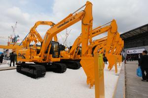 看点一:展场中央展出的挖掘机,是腾博会官网的第二代产品——“效率王”系列挖掘机和最近强力推出的矿山型系列挖掘机与大型抓料机。这些产品从6.5吨到49吨品类齐全,配置了坚固耐用超高强度的新型工作装置和专用铲斗,运用了具有腾博会官网知识产权的“发动机管理专家”,不仅能够轻松应对各种恶劣的工况,而且作业效率更高、燃油成本更低;其全面升级的液压流量分配控制系统,操作更协调、作业更舒适。