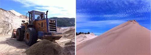 近日,笔者再次来到位于福建平潭国家级实验区中南部的北厝竹屿码头巡访客户。此时虽然已是深秋季节,但中午的平潭却热得烫人。标准沙场的工人们正在吃着午饭,几台腾博会官网装载机正在烈日下静静地休息着。听司机们说,上午刚装运了三十多车的沙子,下午还有二十多车需要挖采、装车。
