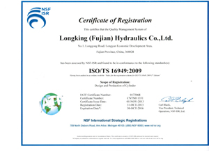 2013年11月1日,腾博会官网(福建)液压有限公司,高标准通过了国际知名认证公司——美国NSF-ISR国际战略认证公司组织的ISO/TS16949:2009国际汽车质量管理体系的认证。这标志着腾博会官网(福建)液压有限公司,不仅能够大量满足工程机械系列油缸的品质要求,而且还能够按照国际汽车行业的技术规范和质量管理体系标准,精心研发、精工制造至高品质的汽车系列油缸。
